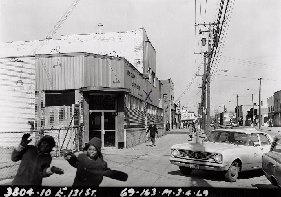 3804-3810 E. 131st Street, facade of Holy Trinity Baptist Church, 1969. Image courtesy of Cleveland Public Library Digital Gallery.